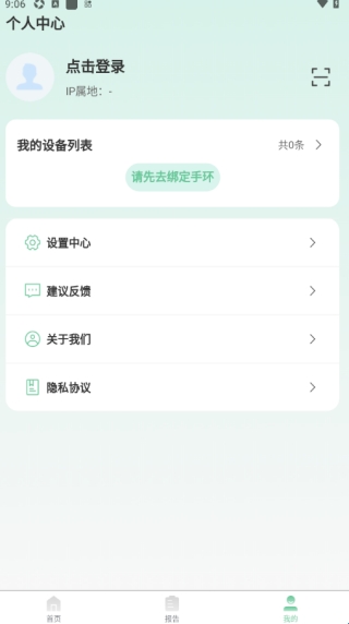 4、点击我的,来到个人中心,提供我的设备列表、设置中心、建议反馈、关于我们等服务。