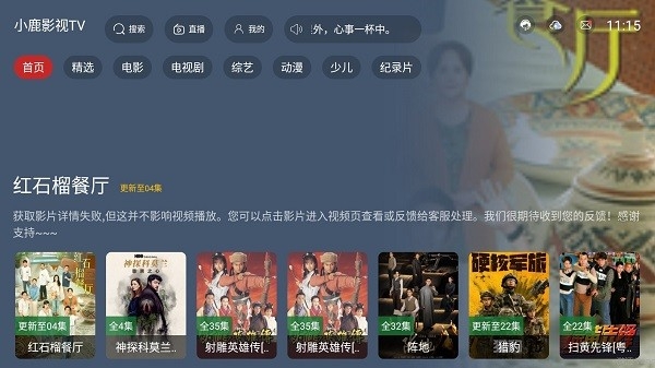 小鹿影视TV是一款能满足大家观看需求的影音软件,完美适配安卓平台支持在电视、平板、手机上安装使用,软件内集影视点播和电视直播观看功能,你可以根据自己需求选择想看的内容,内置接口资源极大丰富了影视资源,很轻松就能找到想看的剧集,点击即可进行惬意的观看。