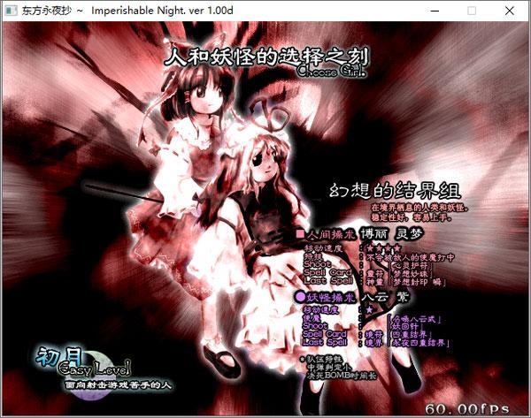 6、然后进入选择人物界面,有四组人物,新手推荐第一组(博丽灵梦+八云紫)(初心向自机)。