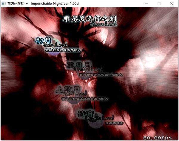 5、然后选择开始游戏后,有4个选项,千万不要看每个选项下面ZUN神的口胡,如果你是新手,或者刚接触东方PROJECT,请从EASY,也就是第一个难度(最简单的)。