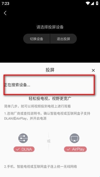 4、然后就会搜索设备,注意手机和电视要在一个wifi下才能搜索到。