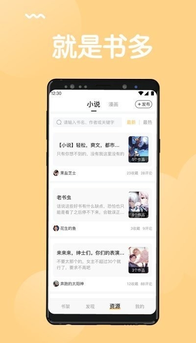 1、任何人可以在这里搜索喜欢的小说,喜欢看漫画的话也能在此寻找资源;