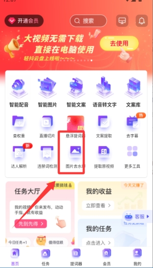 1、打开轻抖app,选择去水印功能,粘贴你想处理的短视频链接,一键清除水印。
