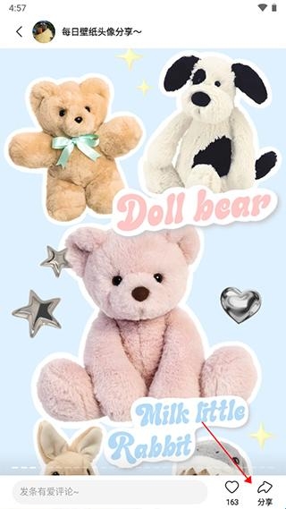 5、进入壁纸图片中点击任意位置后点击【分享】