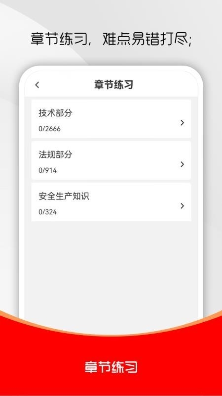1、章节练习:选择章节题库练习版块就可随时刷题,对题库可以让你系统化练习,实时练习更多的考试题库。