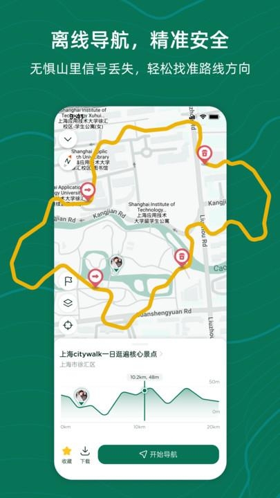 1、具备离线导航功能,精准且安全,即使在山里信号丢失的情况下,也能轻松找准路线方向,保障徒步安全。