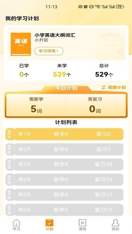 2、学习计划:按照需要来制定专属的学习计划,就可让你制定计划,便捷查看今日的学习计划。