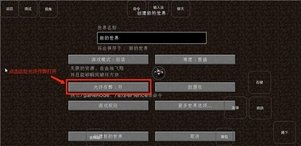 1、创建世界时要将允许作弊改为开,再点击创建世界;