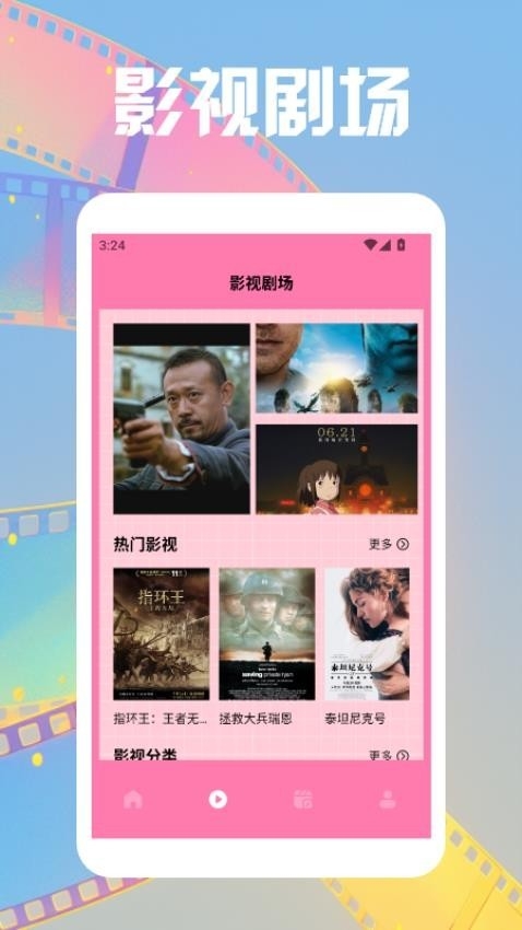 作为一个专业的影视视频播放工具,可以适配所有的安卓手机系统,满足所有用户的影视视频播放需求;更有超多的新鲜影视视频可以欣赏,挖掘更多值得观看的精彩节目,轻松告别剧荒,每天都可以感受精彩影视带来的乐趣;丰富的视频剪辑功能可以让用户轻松创作出全新的视频。