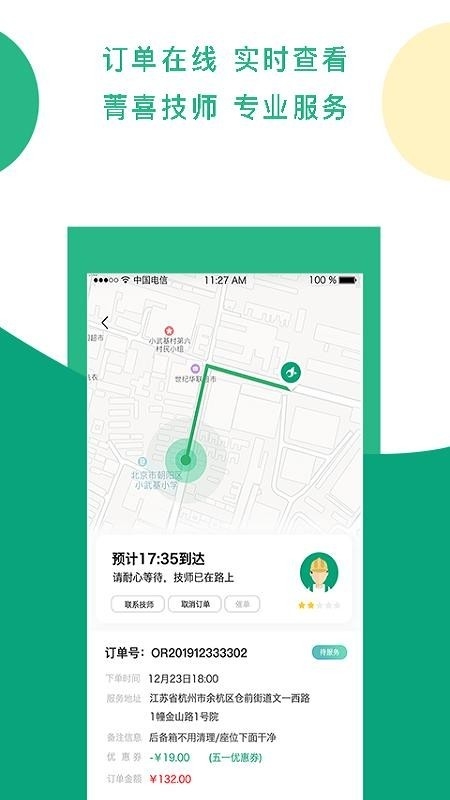 1、订单管理。查看我的订单信息,取消订单,联系技师,评价服务等。