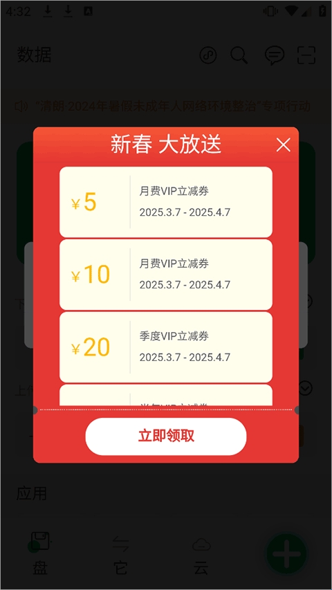 为你存在网盘里的数据提供多种在线服务,照片:时光轴、智能分类、照片故事等;视频:在线观看、倍速播放、高清画质等,文档:在线编辑、格式转换、文字识别等,多达数十种服务等你发掘,直接在网盘内完成操作,不用下载到本地!