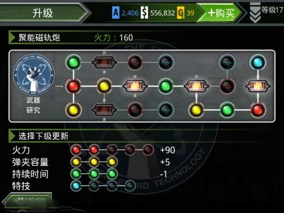 升级磁轨,解放雷!最后一个关节灯亮了,就可以打坦克。买1000A,升级5452A,顺便把第一排两个升了100A。共需要6552A。