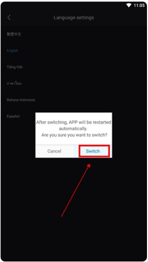 5、弹出选项后,点击右边的【Switch】切换,然后等待app重启即可完成设置。