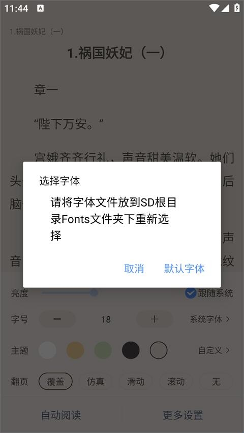 根据个人喜好设置文字大小背景亮度翻页模式等