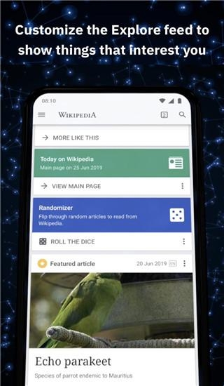 维基百科是一款非常强大的教育学习类软件,该软件中为用户提供了十分全面的百科知识和学习资源,上至天文地理,下至山川湖海,各种类型的知识在这里应有尽有,维基百科中覆盖了历史,人物,自然,文化等多个类别的百科知识,只要拥有了该软件,便能够随时进行查阅与了解。如果有对这款软件感兴趣的朋友,那就快来下载试试吧!