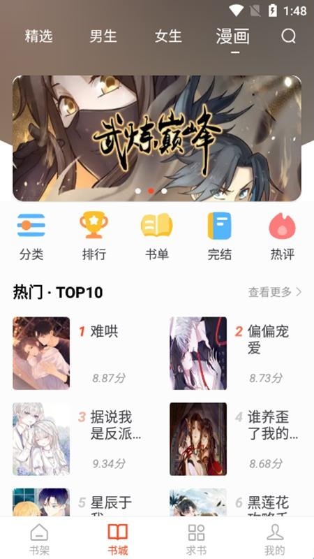 5、首页有各种男生女生漫画分类排行榜,大数据算法精准推送书籍,只为更好的你!