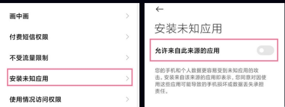 1.手机设置中搜索[安装未知应用],选择我们的应用后,开启[允许来自此来源的应用]