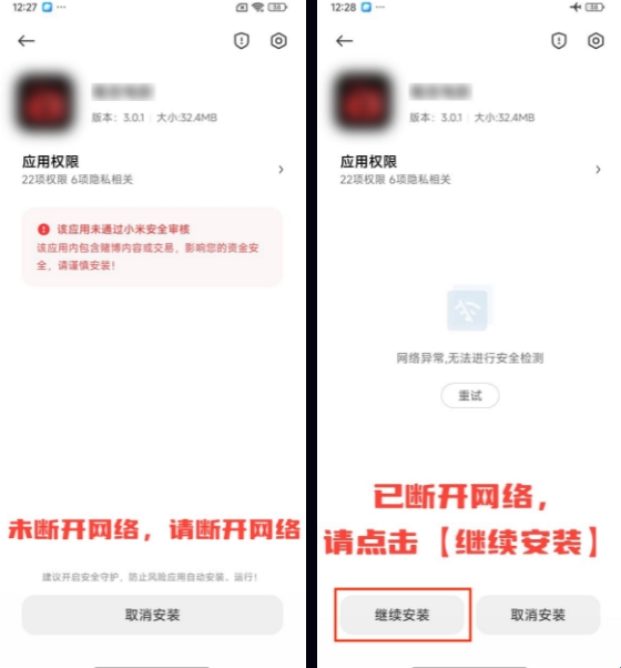由于各手机厂商的限制,如果安装过程中出现异常,可以尝试以下操作