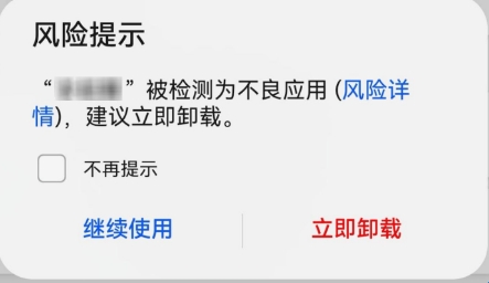 当应用出现以下风险提示时,请勾选不再提示,选择继续使用