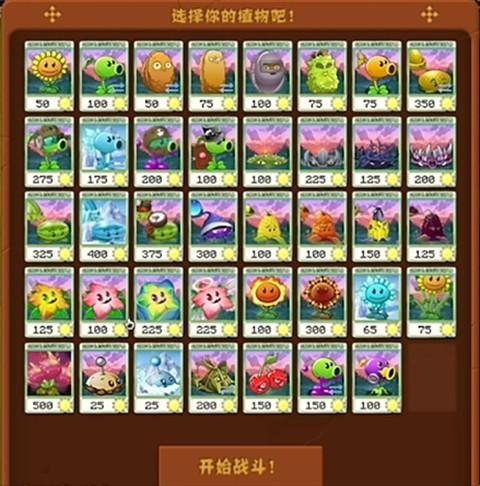 1、游戏一开始,玩家需要从植物卡中选择本关将要使用的植物。
