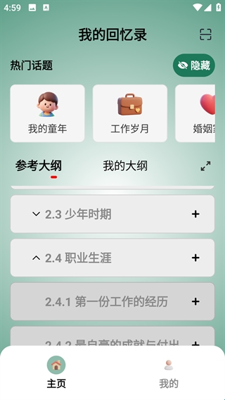 3、可以点击童年或者工作岁月,开始针对性的记录;