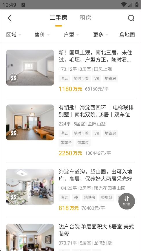 3、房源对比:可选择任意两套二手房源进行对比,房源特色、优势、房价等一目了然,随时随地看房;