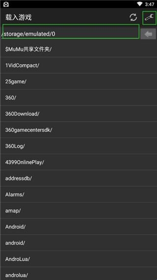 3、在载入游戏界面,点击右上角如图所示工具图标,可以对模拟器进行自定义设置