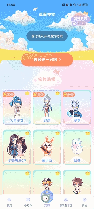 用户点击下方宠物,就可以开始领养宠物啦,选择一个自己喜欢的桌面宠物点击领养即可在桌面看到它啦!