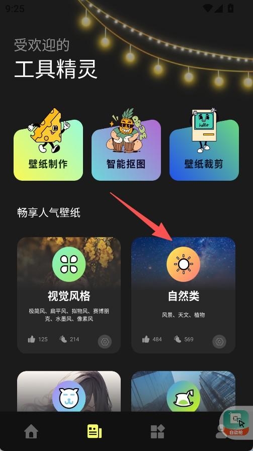 2、进入“自然类”页面,挑选喜欢的自然主题壁纸。
