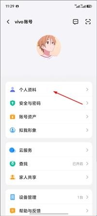 4、进入vivo账号界面后,选择“个人资料”选项。