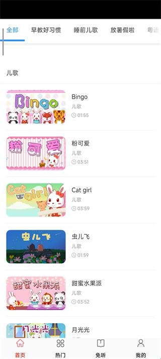 1、打开快听免费音乐大全App,在首页可以收听各种各样的儿歌视频