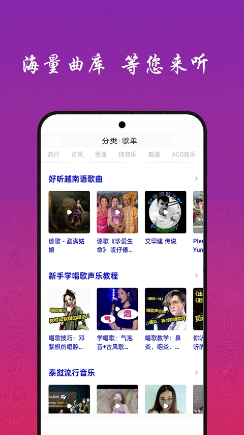 整合国内外音乐网站资源,覆盖超过1000万首曲目,包括中国经典、欧美流行、日韩OST等,支持用户收听世界各地音乐。