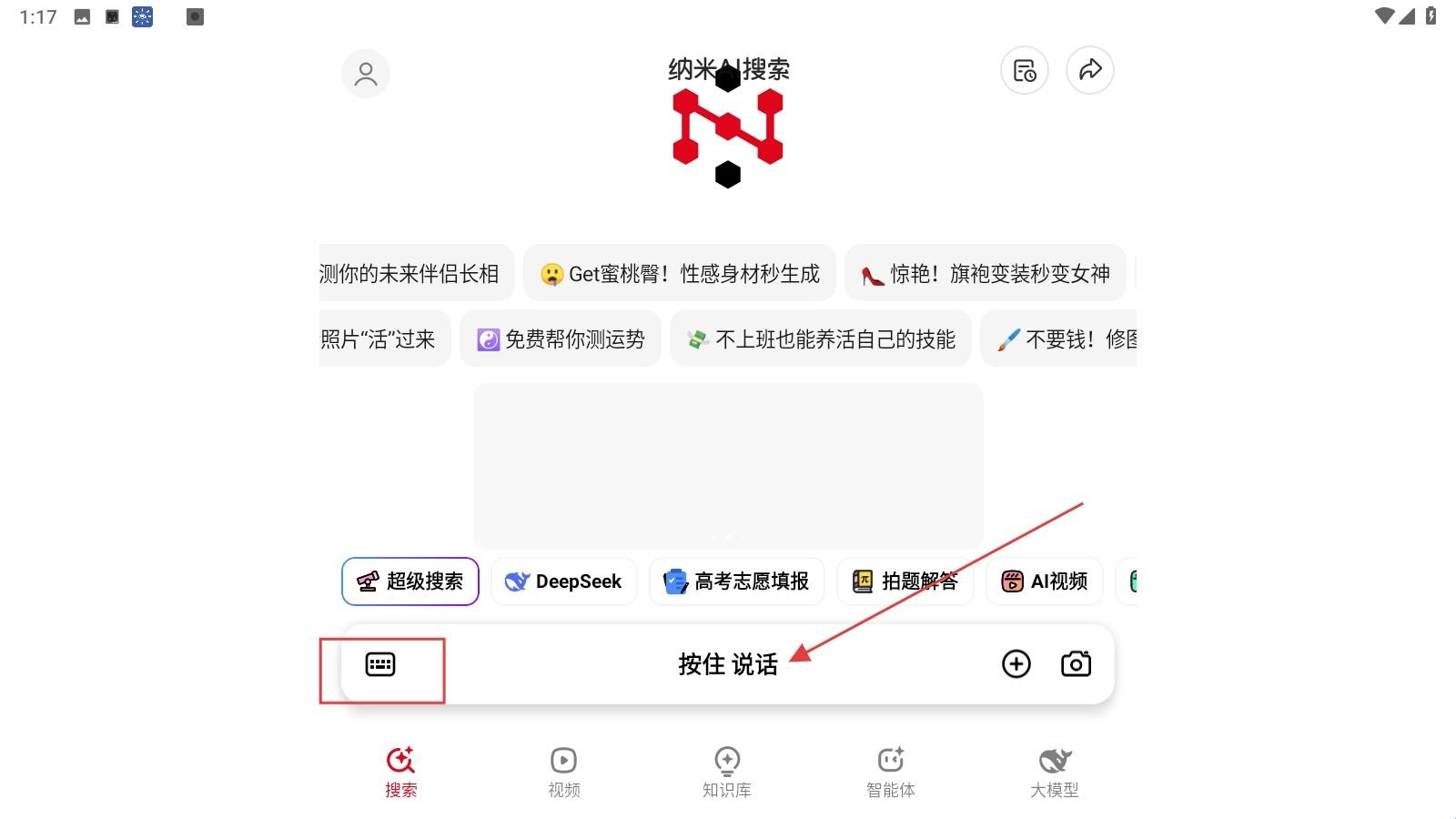 1、点击输入框左侧键盘图标,切换至文字输入模式,可手动输入问题,替代【按住说话】的语音输入。