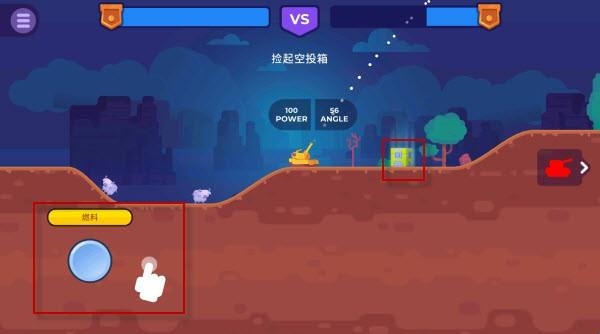 3、可以通过点击左下角按钮来移动坦克寻找燃料燃料。也可以更换威力更大的武器等,这样即使弹道没那么精准,也能将打击覆盖到敌人位置。