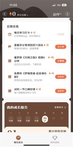 3、如图所示完成日常任务之后可以获得积分奖励,每日签到也可以获取积分。