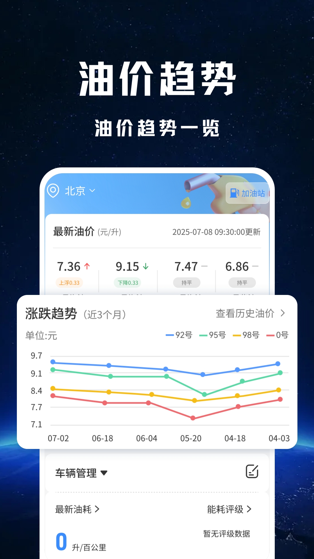4、油价查询:用户可以随时在这里查询最新的油价信息,对油价的涨跌趋势进行查看了解。