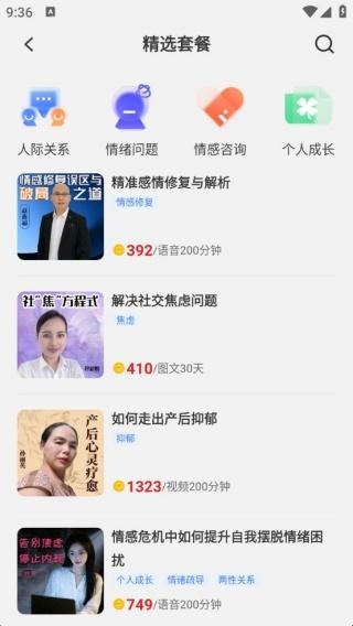 3、基于用户具体心理困扰,提供定制化咨询套餐与专属建议,切实解决心理问题。