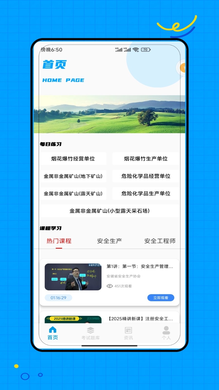 5、课程分类:将课程资源分为了安全生产、安全工程师多种类型,方便用户准确查找适合自己的课程学习。