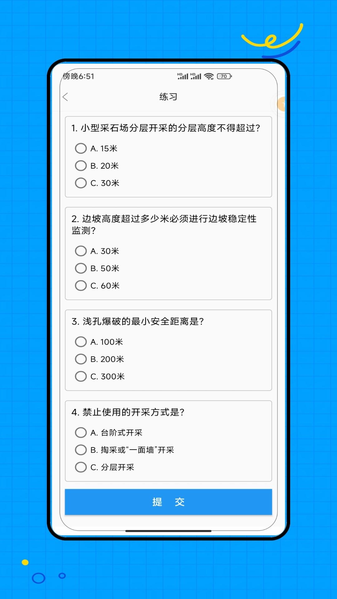 1、每日练习:用户可以自由选择每日练习的题库,获取每日练习的题库题目在线刷题练习。