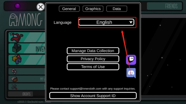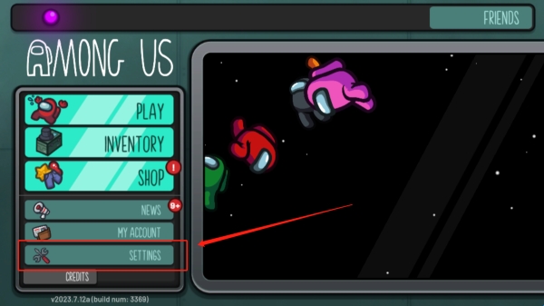1、从当快下载安装太空狼人手机版,进入游戏,找到设置“settings”