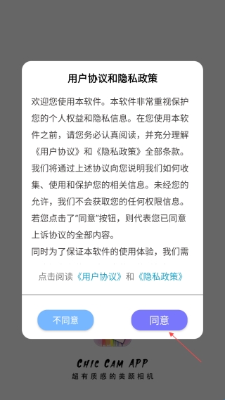 1、下载安装后,阅读同意“用户协议和隐私政策”。