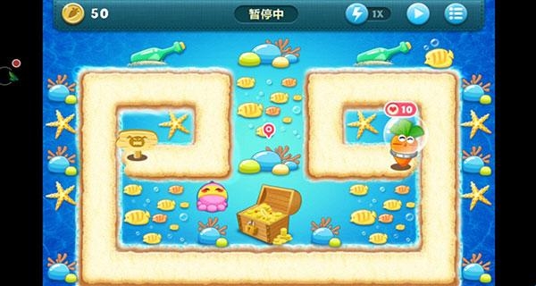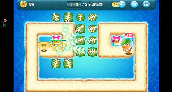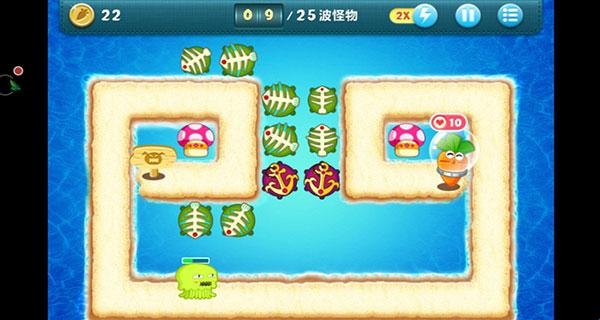怪物堡垒:无限波怪物进攻,需在萝卜被吃掉前摧毁堡垒即可胜利。