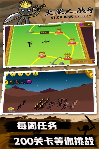 火柴人战争无敌版(Stick War Legacy),这是一款深受广大玩家喜爱的火柴人系列游戏,它的玩法机制非常经典,与策略和卡牌相结合,让玩家沉浸式体验游戏的乐趣。在这个火柴人世界内,弥漫着硝烟的气氛,作为火柴人的一名成员,你需要跟随他们一起攻克敌方营地,占领土地领域。前提是我们需要有一定矿石,才能强化火柴人们。游戏内还内置大量资源,你可以无限使用哦!