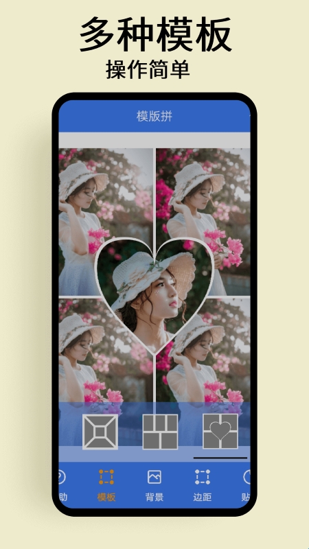 3、模板拼图:可以选择多张图片拼接排版,并支持对单张图片进行修图。