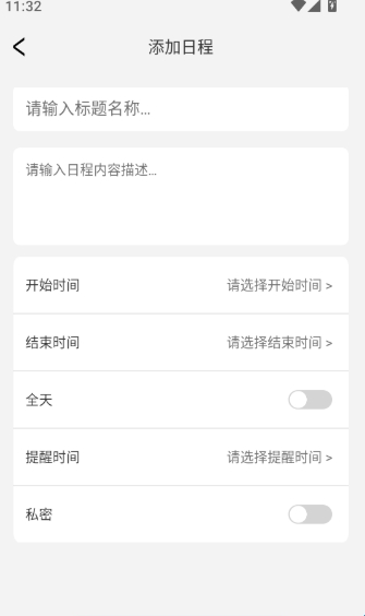 4、最后输入标题名称、内容描述、开始时间、结束时间、提醒时间等内容后,点击“添加日程”按钮就完成了