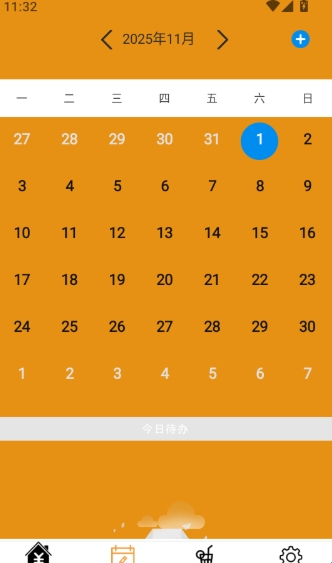 2、在软件首页界面找到底部菜单栏“日程”功能按键点击进入