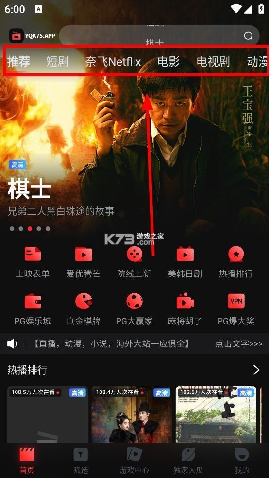 1、在本站下载打开软件,可以选择自己感兴趣的内容,也可以搜索剧集