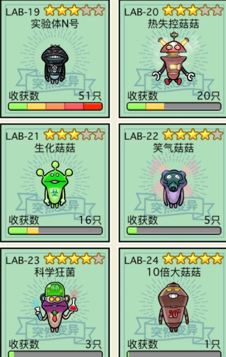 不得不说这是这款游戏最经典、最精华的设置,这款游戏总共有一百多种菇菇,有很多版本的菇菇,必须透过不断的更换设备,升级设备,才能栽培出来。等到全部都搜集完整了,还可以解锁特殊桌布。估计破完游戏大约要1~3个月左右,非常的耐人寻味。