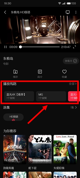 4、如果出现无法加载等播放异常,可切换播放源