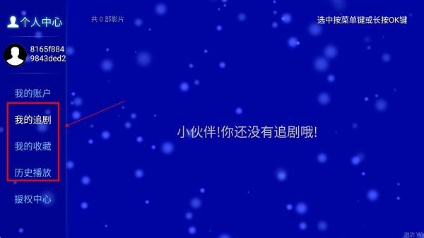 2、个人中心可以查看观看历史,以及加入收藏的影片列表